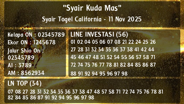 Syair Togel California Angkanet merupakan salah satu referensi populer bagi para pecinta angka main California. Dalam syair ini, biasanya terdapat pantun, kode alam, hingga perumpamaan yang dirangkai untuk membantu menafsirkan angka jitu. Angkanet menyediakan update syair setiap hari dengan gaya bahasa khas yang mudah dimengerti dan cukup akurat. Banyak pemain togel menggunakan syair ini sebagai panduan untuk merumuskan angka main mereka. Selain menampilkan angka bocoran, syair Angkanet juga disukai karena memuat pesan tersirat yang memancing logika dan intuisi pemain dalam menentukan angka jitu malam ini.