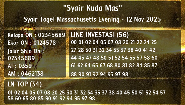 Syair Massachusetts Evening hari ini menjadi incaran utama bagi para pemain togel yang ingin mendapatkan angka hoki dan prediksi jitu. Biasanya, syair disajikan dalam bentuk puisi atau kalimat berima yang mengandung makna tersembunyi. Dari syair tersebut, pemain bisa menafsirkan angka kepala, ekor, colok bebas, dan sebagainya. Banyak komunitas dan situs prediksi membagikan syair setiap hari sebagai acuan utama sebelum memasang taruhan. Dengan memperhatikan pola dan angka yang sering muncul, pemain bisa mengembangkan rumus sendiri berdasarkan inspirasi dari syair yang dikeluarkan hari ini. Ini menjadi strategi penting dalam dunia togel.