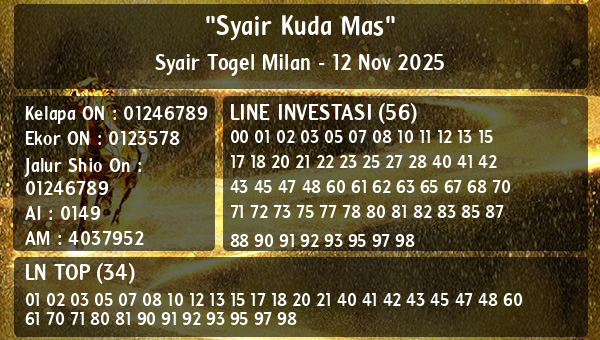 Syair Milan hari ini menjadi incaran utama bagi para pemain togel yang ingin mendapatkan angka hoki dan prediksi jitu. Biasanya, syair disajikan dalam bentuk puisi atau kalimat berima yang mengandung makna tersembunyi. Dari syair tersebut, pemain bisa menafsirkan angka kepala, ekor, colok bebas, dan sebagainya. Banyak komunitas dan situs prediksi membagikan syair setiap hari sebagai acuan utama sebelum memasang taruhan. Dengan memperhatikan pola dan angka yang sering muncul, pemain bisa mengembangkan rumus sendiri berdasarkan inspirasi dari syair yang dikeluarkan hari ini. Ini menjadi strategi penting dalam dunia togel.