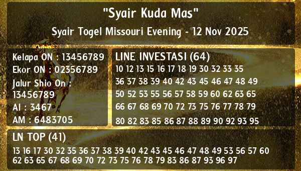 Syair Togel Missouri Evening Angkanet merupakan salah satu referensi populer bagi para pecinta angka main Missouri Evening. Dalam syair ini, biasanya terdapat pantun, kode alam, hingga perumpamaan yang dirangkai untuk membantu menafsirkan angka jitu. Angkanet menyediakan update syair setiap hari dengan gaya bahasa khas yang mudah dimengerti dan cukup akurat. Banyak pemain togel menggunakan syair ini sebagai panduan untuk merumuskan angka main mereka. Selain menampilkan angka bocoran, syair Angkanet juga disukai karena memuat pesan tersirat yang memancing logika dan intuisi pemain dalam menentukan angka jitu malam ini.