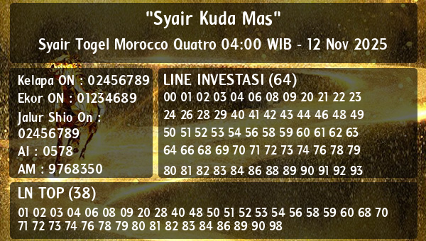Syair Togel Morocco Quatro 04:00 WIB Angkanet merupakan salah satu referensi populer bagi para pecinta angka main Morocco Quatro 04:00 WIB. Dalam syair ini, biasanya terdapat pantun, kode alam, hingga perumpamaan yang dirangkai untuk membantu menafsirkan angka jitu. Angkanet menyediakan update syair setiap hari dengan gaya bahasa khas yang mudah dimengerti dan cukup akurat. Banyak pemain togel menggunakan syair ini sebagai panduan untuk merumuskan angka main mereka. Selain menampilkan angka bocoran, syair Angkanet juga disukai karena memuat pesan tersirat yang memancing logika dan intuisi pemain dalam menentukan angka jitu malam ini.