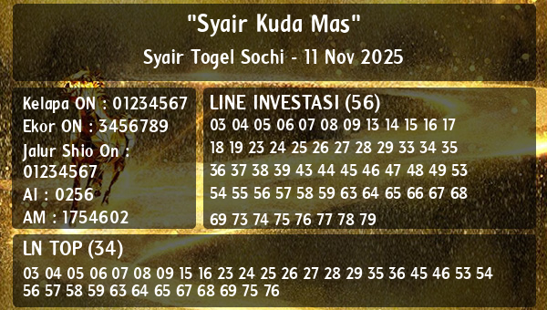 Syair Sochi hari ini menjadi incaran utama bagi para pemain togel yang ingin mendapatkan angka hoki dan prediksi jitu. Biasanya, syair disajikan dalam bentuk puisi atau kalimat berima yang mengandung makna tersembunyi. Dari syair tersebut, pemain bisa menafsirkan angka kepala, ekor, colok bebas, dan sebagainya. Banyak komunitas dan situs prediksi membagikan syair setiap hari sebagai acuan utama sebelum memasang taruhan. Dengan memperhatikan pola dan angka yang sering muncul, pemain bisa mengembangkan rumus sendiri berdasarkan inspirasi dari syair yang dikeluarkan hari ini. Ini menjadi strategi penting dalam dunia togel.