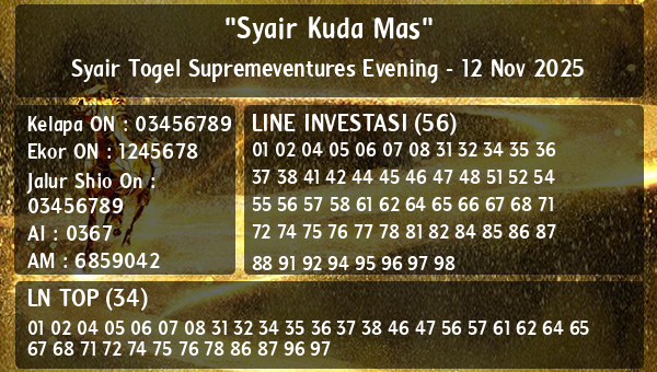 Syair Supremeventures Evening hari ini menjadi incaran utama bagi para pemain togel yang ingin mendapatkan angka hoki dan prediksi jitu. Biasanya, syair disajikan dalam bentuk puisi atau kalimat berima yang mengandung makna tersembunyi. Dari syair tersebut, pemain bisa menafsirkan angka kepala, ekor, colok bebas, dan sebagainya. Banyak komunitas dan situs prediksi membagikan syair setiap hari sebagai acuan utama sebelum memasang taruhan. Dengan memperhatikan pola dan angka yang sering muncul, pemain bisa mengembangkan rumus sendiri berdasarkan inspirasi dari syair yang dikeluarkan hari ini. Ini menjadi strategi penting dalam dunia togel.