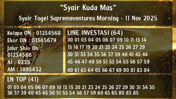 Syair Supremeventures Morning hari ini menjadi incaran utama bagi para pemain togel yang ingin mendapatkan angka hoki dan prediksi jitu. Biasanya, syair disajikan dalam bentuk puisi atau kalimat berima yang mengandung makna tersembunyi. Dari syair tersebut, pemain bisa menafsirkan angka kepala, ekor, colok bebas, dan sebagainya. Banyak komunitas dan situs prediksi membagikan syair setiap hari sebagai acuan utama sebelum memasang taruhan. Dengan memperhatikan pola dan angka yang sering muncul, pemain bisa mengembangkan rumus sendiri berdasarkan inspirasi dari syair yang dikeluarkan hari ini. Ini menjadi strategi penting dalam dunia togel.