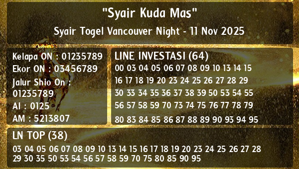 Syair Vancouver Night hari ini menjadi incaran utama bagi para pemain togel yang ingin mendapatkan angka hoki dan prediksi jitu. Biasanya, syair disajikan dalam bentuk puisi atau kalimat berima yang mengandung makna tersembunyi. Dari syair tersebut, pemain bisa menafsirkan angka kepala, ekor, colok bebas, dan sebagainya. Banyak komunitas dan situs prediksi membagikan syair setiap hari sebagai acuan utama sebelum memasang taruhan. Dengan memperhatikan pola dan angka yang sering muncul, pemain bisa mengembangkan rumus sendiri berdasarkan inspirasi dari syair yang dikeluarkan hari ini. Ini menjadi strategi penting dalam dunia togel.